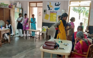 In the Government Girls Higher Secondry School, Achirupakkam town, demo -classes were held on Electro-Magnetic Induction, followed by a Quiz session. Seven students won prizes in the quiz session. Students flock around Shanmugam after the session, with requests for more information, exhibiting eagerness to learn