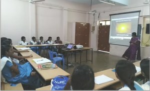 Guest lectures by experts in their lines of specialities add lateral knowledge to Patient Care Diploma students. Dr Suhanya from Corporation Hospital, Periyar Nagar, Choolaimedu speaks on 'Structure of the Eye & Eye Care' for 1st the year students of Sarva Vidya
